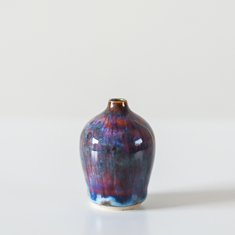 This ceramic mini vase is handcrafted with care and attention. The process begins with throwing the clay, gradually building up the shape. Patience and precision are essential to give the vase the right balance and simplicity. Every step, from shaping to glazing, requires focus and an eye for detail.