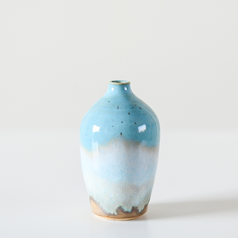 This ceramic mini vase is handcrafted with care and attention. The process begins with throwing the clay, gradually building up the shape. Patience and precision are essential to give the vase the right balance and simplicity. Every step, from shaping to glazing, requires focus and an eye for detail.