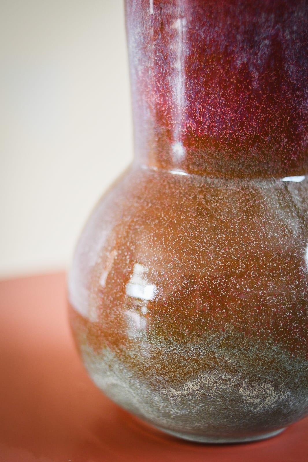 Tijdens de uiteindelijke hoofdstook op hoge temperatuur wordt de vaas volledig afgebakken. Kleine temperatuurverschillen in de keramiekoven zorgen ervoor dat het glazuur op elke vaas op een eigen manier reageert en uitvloeit. Hierdoor is geen enkel exemplaar hetzelfde en heeft de vaas een uniek patroon en een eigen textuur. De Orion Vaas is door deze hoge stooktemperatuur volledig waterdicht en vormt een stevige, robuuste basis voor bloemen of takken in het interieur.