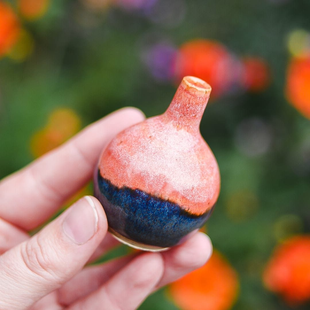 Handgemaakt keramieken minivaasje, met zorg gedraaid en afgewerkt. Het vaasje is uniek door de handmatige productie en subtiele glazuurafwerking. Perfect als decoratie of cadeau.