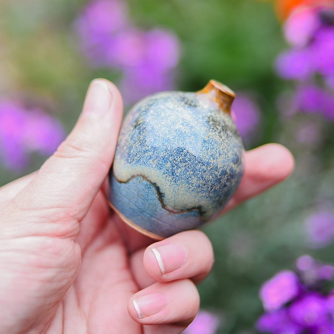 Dit keramieken minivaasje is met zorg en aandacht met de hand gemaakt. Het proces begint met het draaien van de klei, waarbij ik langzaam de vorm opbouw. Geduld en precisie zijn essentieel om het vaasje de juiste balans en eenvoud te geven. Elke stap, van het vormen tot het aanbrengen van de glazuur, vraagt om concentratie en oog voor detail.