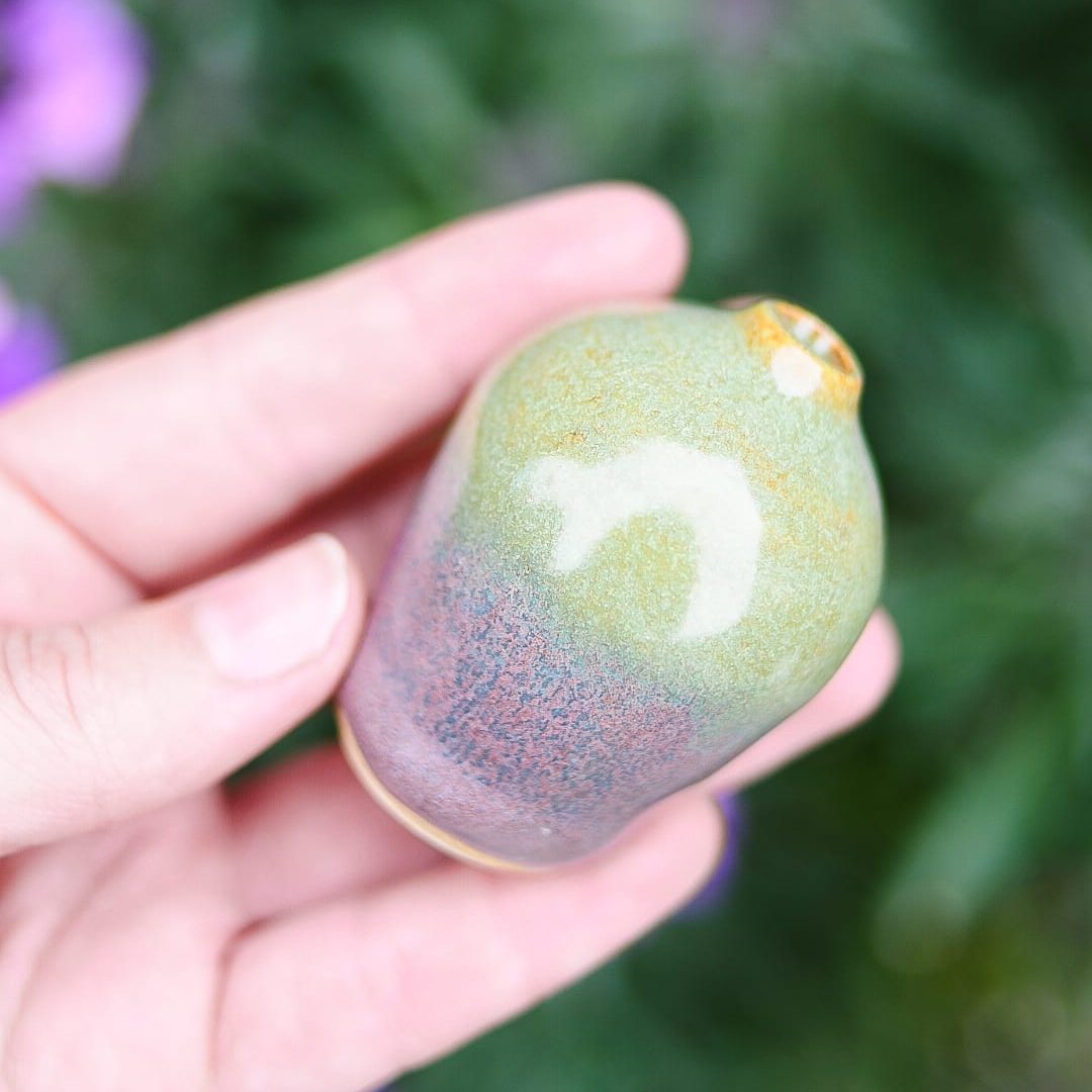 Handgemaakt keramieken minivaasje, met zorg gedraaid en afgewerkt. Het vaasje is uniek door de handmatige productie en subtiele glazuurafwerking. Perfect als decoratie of cadeau.