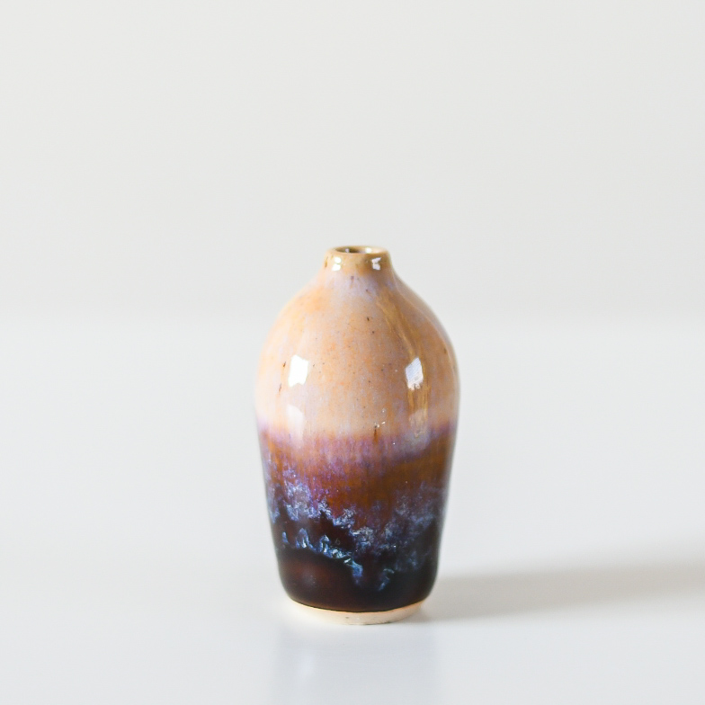 De glazuurafwerking is een belangrijk onderdeel van het proces. Ik breng de glazuur in meerdere lagen aan en experimenteer met texturen en kleuren om het vaasje zijn eigen, unieke uitstraling te geven. Het resultaat is een subtiele, verfijnde afwerking die de natuurlijke schoonheid van het keramiek benadrukt.
